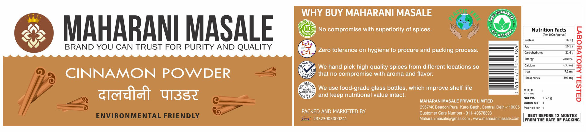 Add a touch of warmth and luxury to your kitchen with Maharani Masale Cinnamon Powder. Made from handpicked Ceylon cinnamon sticks, it’s stone-ground in small batches to preserve its natural sweetness, aroma, and essential oils.